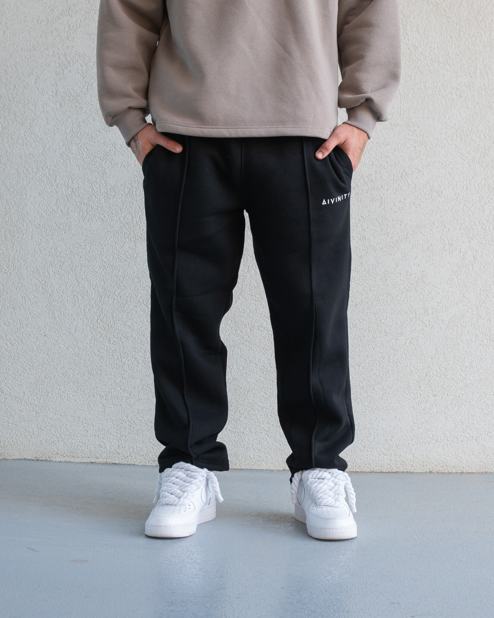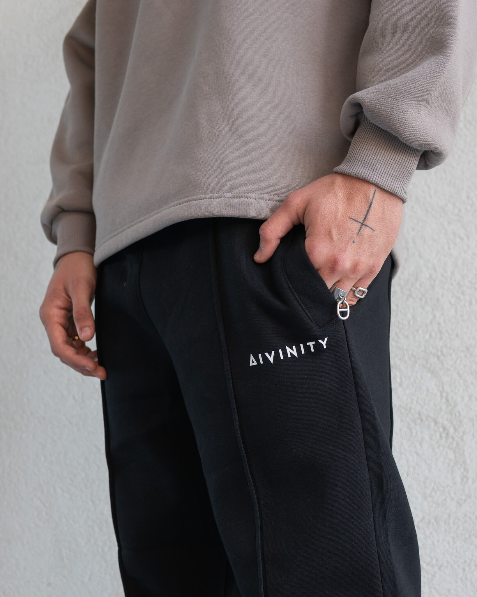 - White Signature Brick Logo "ΔIVINITY" Printed On The Left Area